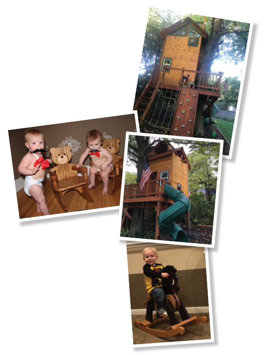 “I began building rocking horses, miniature kitchens, bear chairs, wooden trains and cribs for dolls,” says Dr. O’Dell. “Woodworking is all about having the right tools.” At the time, he had a limited number of tools and typically made his children’s gifts out of cheap lumber, such as pine. “In some ways, those gifts were more special because I had to create them without a lot of fancy tools or expensive wood,” he continues.