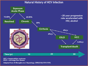 - 20% with chronic HCV infection develop cirrhosis leading to hepatocellular carcinoma, decompensation, or death