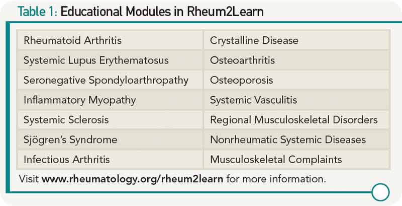 Rheum2Learn provides IM housestaff with plenty of room for learning rheumatology over the course of IM training. Having been available online since November 2012, Rheum2Learn is gaining greater general recognition by word of mouth. It will be shared with the attendees of the upcoming national meeting of the Association of Program Directors of Internal Medicine. It is equally important that rheumatologists who are involved in IM resident education publicize this freely available product to IM program directors.