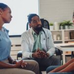 Black family, healthcare and a pediatrician talking to a patient in the hospital for medical child care. Kids, trust or medicine and a nurse consulting a boy with his mother in the clinic for health.